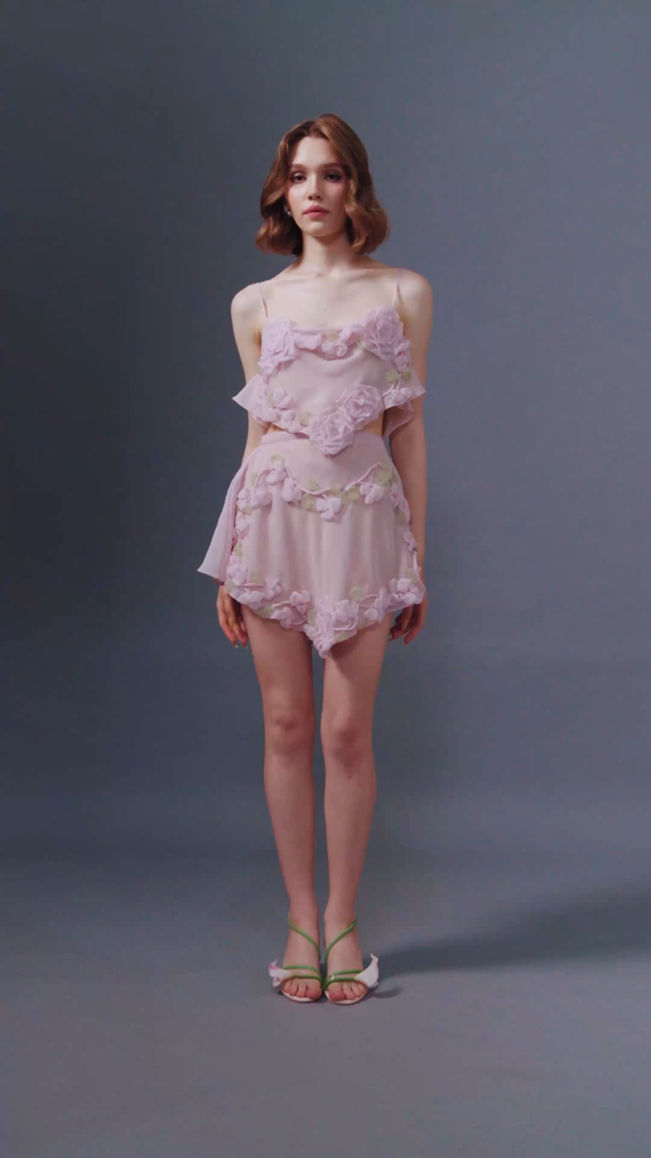 Gentle fluidity in rose chiffon embroidery embracing spring energy in this flowy spaghetti strap top. Pair it with LISSIE SKIRT for an delicate sway in spring.