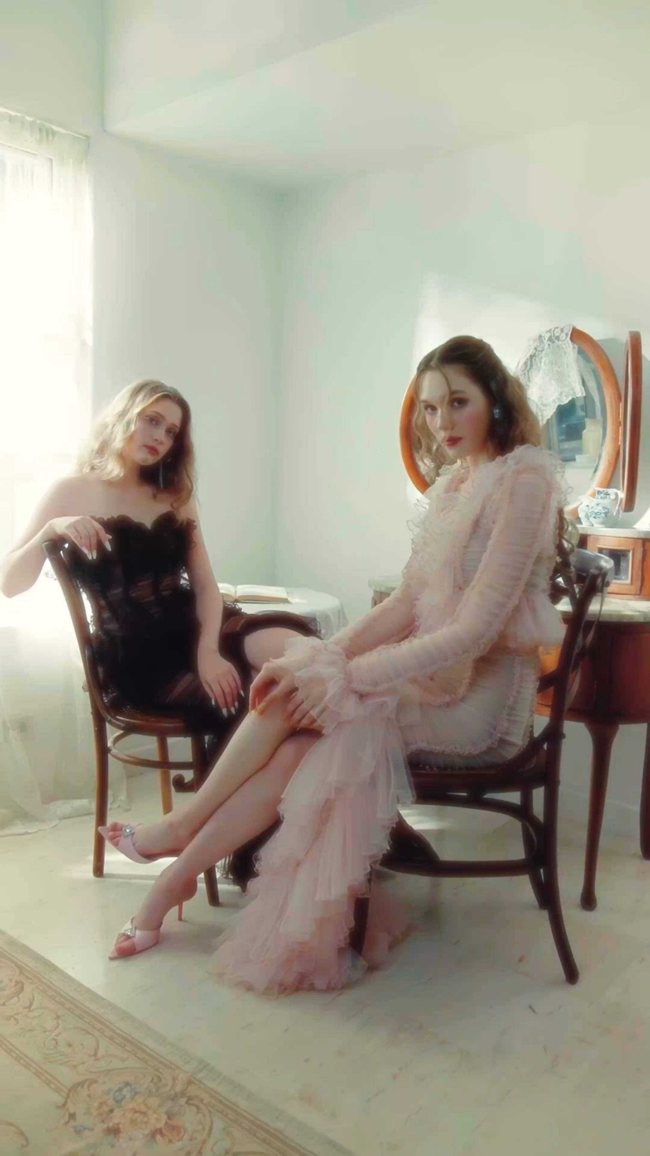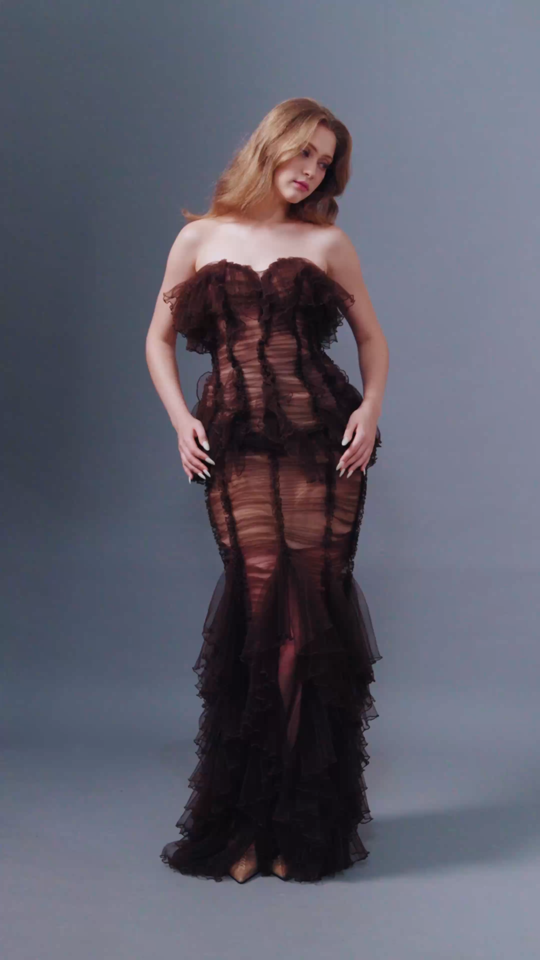 Captivating gaze of airy tulle works on corset bodice, casting spells of mystery. Together with TILLE SKIRT for the look of a muse.